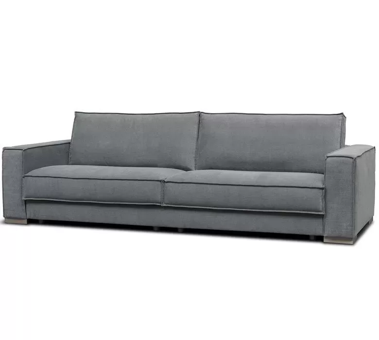 Corrado jest Tak samo miękki jak Rio, a to dzięki połączeniu dwóch rodzajów pianek wysokoelastycznych w konstrukcji siedziska i puchu silikonowego, wypełniającego poduchy oparciowe. Przyjemne wrażenie zapadania się nie skutkuje odkształceniem mebla, którego forma pozostanie niezmieniona przez długi czas. Wyróżnikiem tego modelu jest natomiast ciekawa, odwrócona lamówka, do wykonania której starannie wyselekcjonowaliśmy odpowiednie tkaniny, gwarantujące nietuzinkowy efekt.