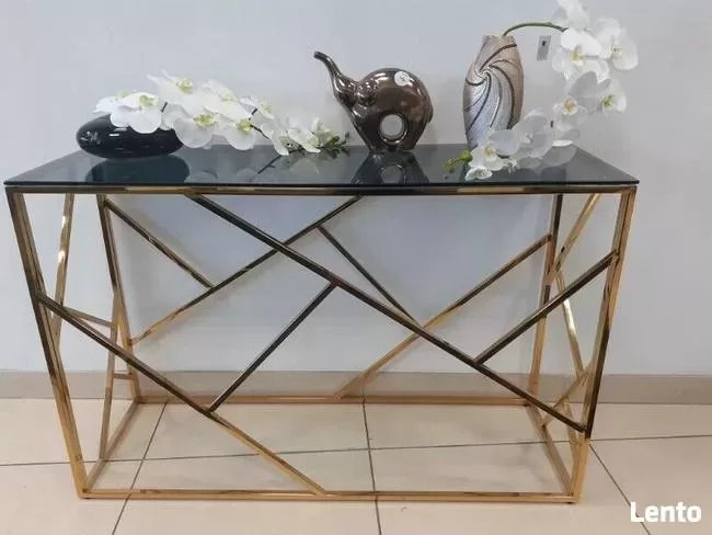 Konsolka ze szkła hartowanego ze złotym stelażem