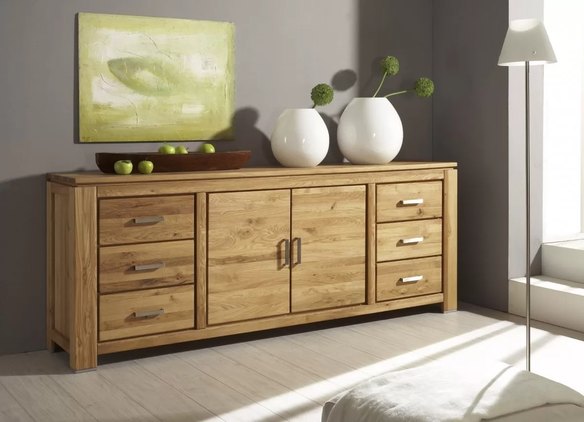 Niezwykle gustowna duża dębowa komoda typ 49 marki Dekort z kolekcji Faro cechuję się najwyższą jakością wykonania. Ponadto wyróżnia się ona swoim interesującym wyglądem oraz wyszukanym designem. Doskonale dopasuje się do wystroju każdego salonu lub jadalni. Gwarantem najlepszego poziomu  wykonania jest polski producent Dekort, w związku z czym odpowiadają one najwyższym standardom i wykonane zostały z dbałością o każdy szczegół. Prosta i elegancka forma komody i materiał wykonania jakim jest lite drewno dębowe z fornirowanymi elementami pozwoli szykownie upiększyć niejedno pomieszczenie. Dużą dębową komodę Faro typ 49 wyposażono w funkcjonalne drzwiczki oraz pojemne szuflady, dzięki czemu przechowywanie, a także organizacja zastawy czy innych akcesoriów nie będzie sprawiać najmniejszego kłopotu.