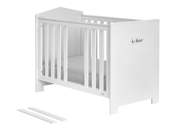 Łóżeczko Marsylia jest atestowane i zgodne z polskimi i europejskimi normami pod względem wymagań bezpieczeństwa, wytrzymałości i trwałości.Możliwości łączenia Łóżeczko Marsylia wyposażone jest w dekor z napisem 'Le Soleil’ (fr. słońce) dzięki czemu stanowi jeden z elementów kolekcji Marsylia. Doskonale spełnia swoją funkcję także jako samodzielny element. Dostępne jest bez materaca, stelaż pod materac jest zawsze dołączony. Pasuje zarówno do pokoiku chłopca, jak i dziewczynki. Do łóżeczka można dokupić szufladę.