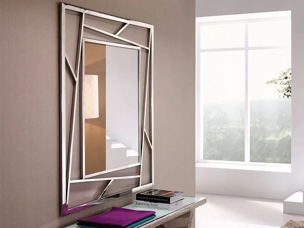 - Nowoczesne lustro w niebanalnej geometrycznej ramie wykonanej z polerowanej stali nierdzewnej w kolorze srebra. Doskonale wkomponuje się w minimalistyczną przestrzeń domową spełniając swoją funkcję praktyczną oraz dekoracyjną. Dostępne różne rozmiary.