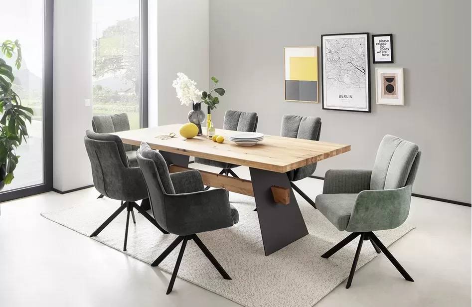 Krzesło MALIA E zielone z podłokietnikami to nowoczesne krzesło obrotowe wykończone miękką tkaniną. Posiada siedzisko na sprężynach kieszeniowych, dzięki temu jest miękkie i bardzo wygodne. Idealny wybór dla osób ceniących sobie luksus podczas rozmów przy stole.