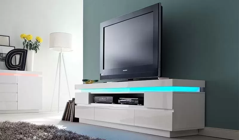 Mebel posiada oświetlenie RGB, które pozwala na zmianę koloru oświetlenia.