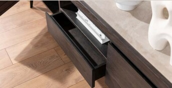 Wykonana z naturalnego dębu, olejowana, górny blat komody wyłożony spiekiem kwarcowym.
